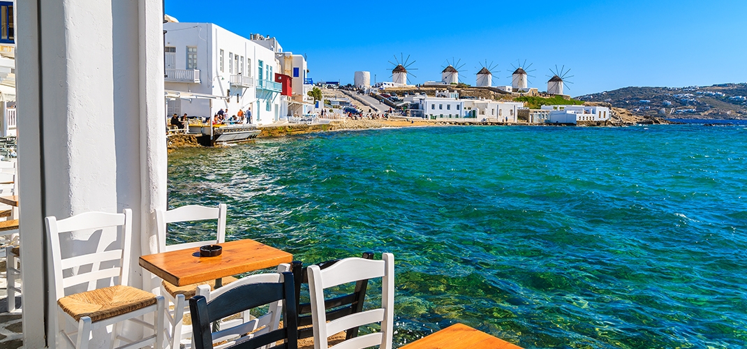 Mykonos is known as the party island, for the fun loving, sun worshippers, who come to laze on the beaches during summer months with its many trendy restaurants, tavernas and live entertainment venues. A stroll through Chora Mykonos, the historic town is where you will find a labyrinth of winding stone paved streets of blue shuttered whitewashed house, Old Churches and narrow brightly coloured Fuchsia Bougainvillea lined alleyways. On the hillside overlooking Mykonos Town stand the emblematic Windmills, a favourite spot for photo opportunities.