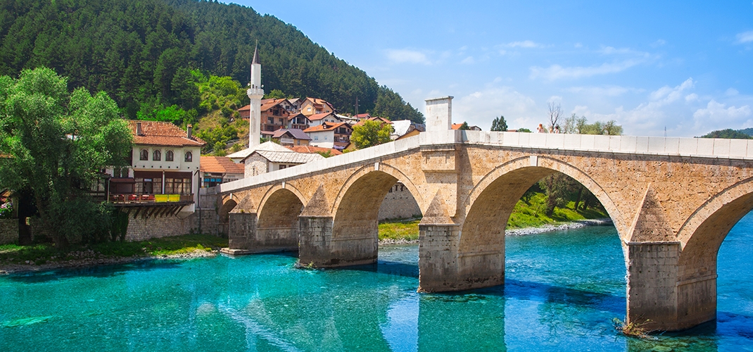 Located on the Balkan Peninsula, Bosnia and Herzegovina is a country with medieval villages, rivers, lakes and the craggy Dinaric Alps. The capital of Sarajevo has a well preserved Old Quarter, Baščaršija with the 16th Century landmarks of the Gazi Husrev-beg Mosque and Ottoman Latin Bridge, the site of the assassination of Archduke Franz Ferdinand, which ignited World War I. Bosnia and Herzegovina is truly a lovely place to visit with the stunning Una River and towns like Mostar and Stolac where Ottoman and Byzantine, Roman and Balkan, Slavic and other styles all come together between their ancient streets.